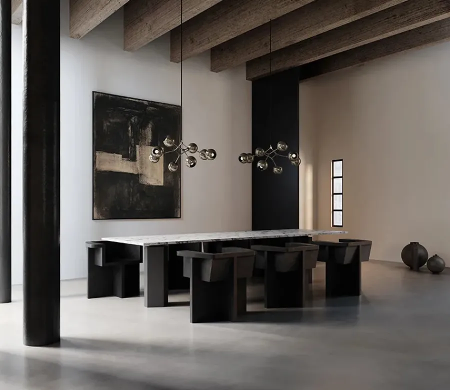 101 Copenhagen har tilføjet et twist til deres ikoniske design med de elegante globusformet metal lampeskærme. Lysekronen er en hyldest til 80’ernes geometriske designs med fokus på rene linjer. Lampen passer derfor nemt ind i enhver boligindretning. Lysekronen er alsidig takket være dens justerbare arme. Dermed kan du selv tilpasse lysekronen dine æstetiske præferencer og lysbehov.