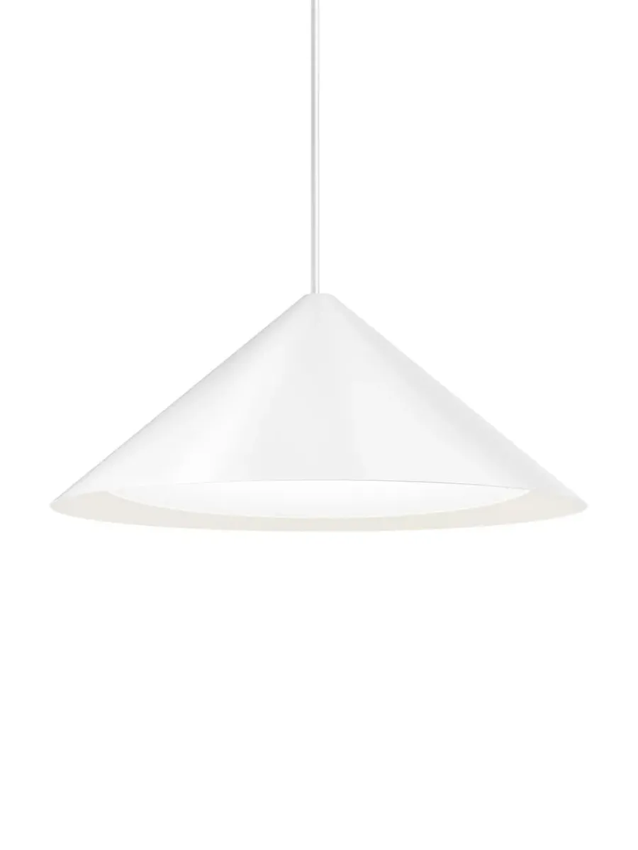 De fine pendler laves i sort eller hvid i fire forskellige størrelser, og er lavet med integreret LED-enhed.