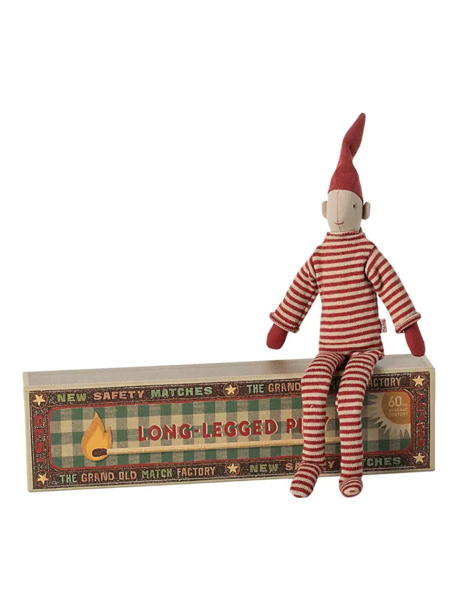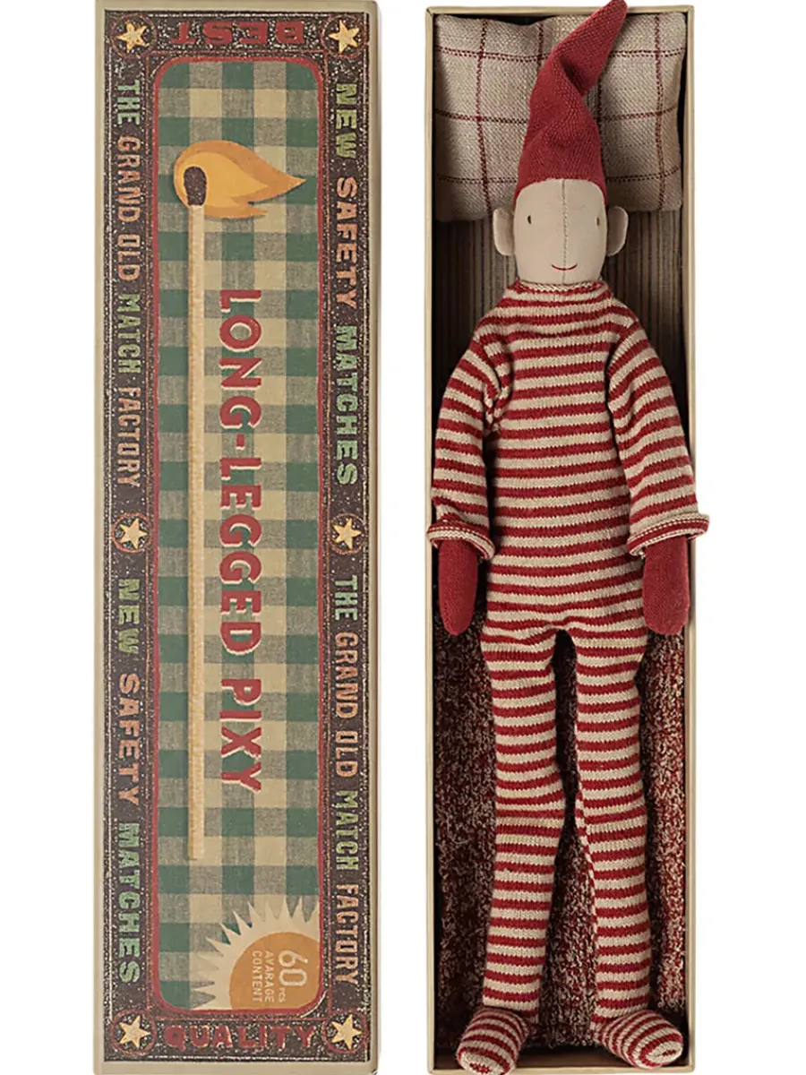 Tilføj et strejf af leg og nostalgi til julen med Mailegs Long Legged Pixy i æske. Denne lille nisse kommer i en smukt dekoreret tændstikæske, der fungerer som både seng og opbevaring. Med sine lange ben, røde nissehue og fine håndlavede detaljer er Pixy en charmerende figur, der indfanger essensen af Mailegs juleunivers. Den kompakte størrelse gør den oplagt til gave, kalenderpakke eller som pynt på en hylde. En sjov og hyggelig figur, der kan bruges år efter år som en fast del af julens traditioner.
