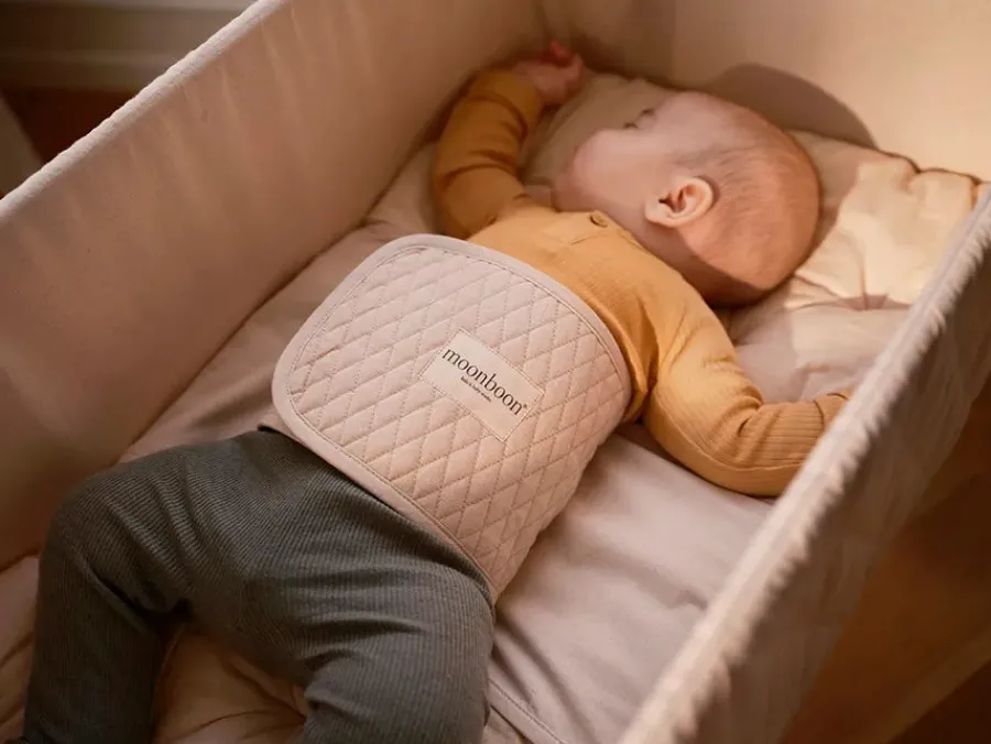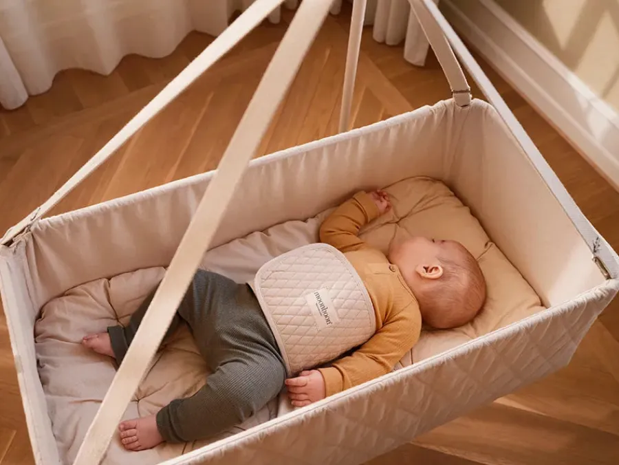 Et blødt og behageligt støttebælte. Bæltet hjælper barnet til at ligge i midten af . Bæltet er udviklet til børn fra 0-6 måneder, som er aktive under søvnen og har brug for ekstra tryghed i vuggen.