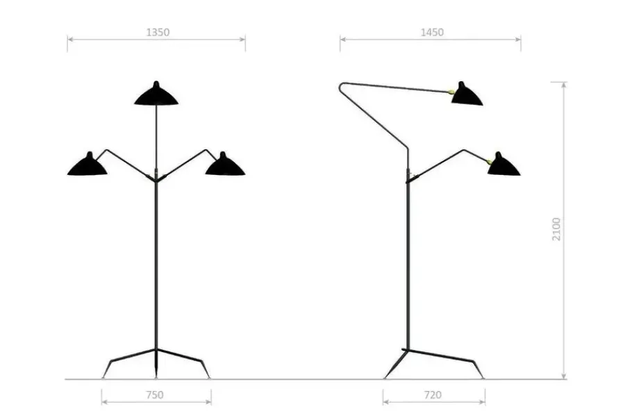 Standing Lamp w/3 Heads/Arms af Serge Mouille<Editions Serge Mouille Online
