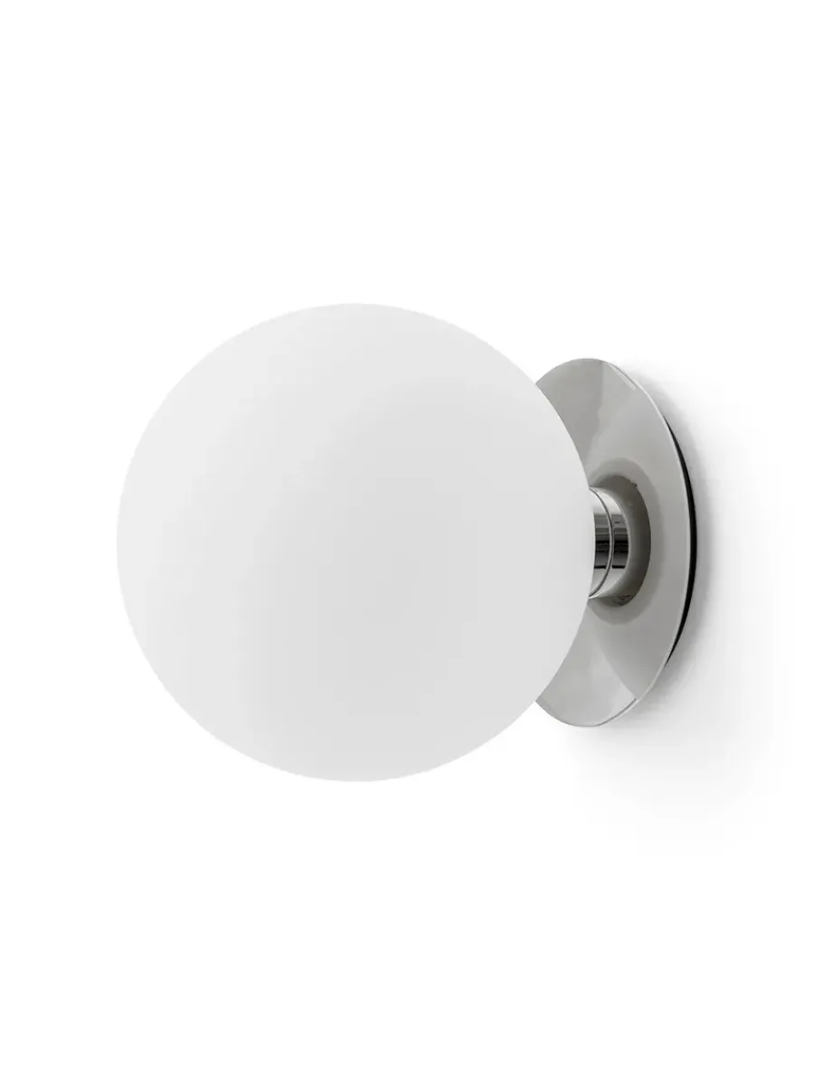 TR Bulb Wall/Ceiling Lamp fra Audo Copenhagen er en stilren og moderne lampe, designet til fleksibel montering på både vægge og lofter. Med sin minimalistiske æstetik og innovative formgivning passer den perfekt ind i moderne interiører, hvor den tilfører et elegant og sofistikeret udtryk. TR Bulb Lampen består af en rund, opalglas-skærm, der spreder et blødt og diffust lys, hvilket skaber en behagelig og stemningsfuld belysning. Basen er udført i poleret stål, hvilket tilfører et eksklusivt og industrielt præg, samtidig med at den reflekterer lyset på en subtil og elegant måde.
