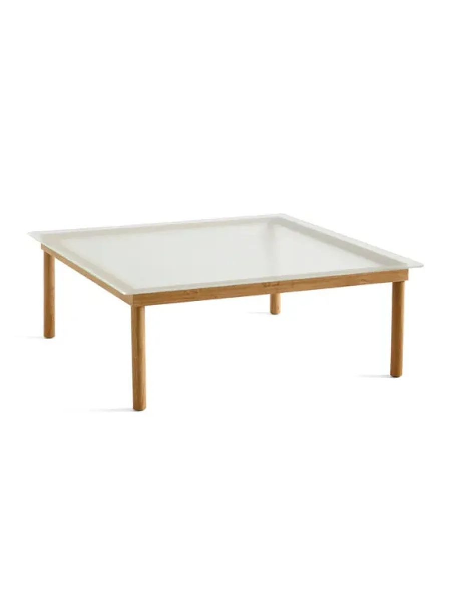 Kofi sofabordet fra HAY er designet af Martin Solem og denne variant måler 60 x 60 cm. Bordet laves med et stel i egetræ eller valnød. Bordplader: – Clear glass – Clear reeded glass Mål: Længde: 60 cm Bredde: 60 cm Højde: 36 cm