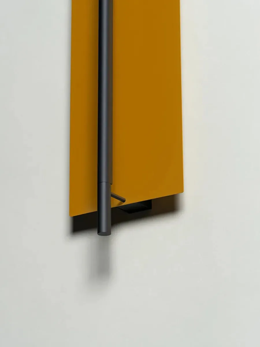 Lámina Dorada 45 væglampen har et minimalistisk og strømlinet design. Lampen passer perfekt ind i den moderne boligindretning med dens slanke silhuet. Lámina Dorada væglampen er udstyret med indbygget LED-lys og en tynd flad metalplade, der svagt men effektivt spreder lyset. Lampen ligner en lysende skulptur og kan bruges i flere rum i hjemmet. Den flade skærm er i en gylden farve, mens stellet er sort med mat finish.
