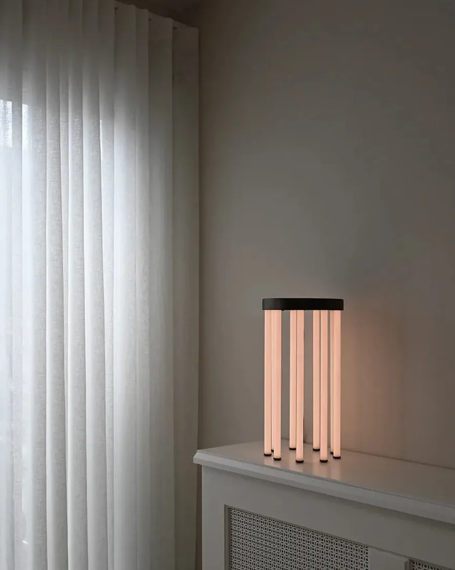 Neon sidebordet kombinerer lys og funktionalitet, således du både får bord og lampe i et og samme møbel. Neon Side Table har fødder i lysstofrør og bordplade i bronzefarvet metal. Brug bordet ved siden af en sofa eller en lænestol for et afslappet og hyggeligt udtryk.