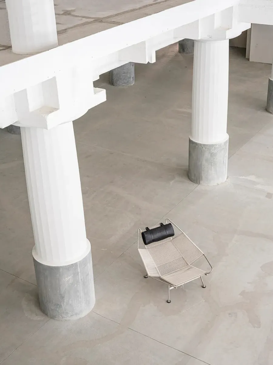 Flaglinestolen, som Hans J. Wegner designede i 1950, er i sandhed noget for sig. Stolens ramme er fremstillet af massivt rustfrit stål, hvilket giver den en robust og moderne æstetik. Sæde og ryg består af cirka 240 meter specialfremstillet flaglinesnor, der skaber en fleksibel og støttende overflade. For at øge komforten leveres stolen med et langhåret fåreskind og en nakkepude, hvilket tilføjer en blød kontrast til de mere hårde materialer.
