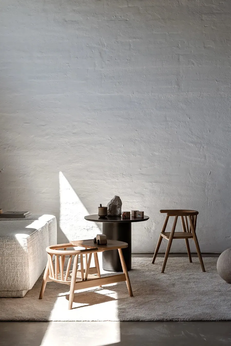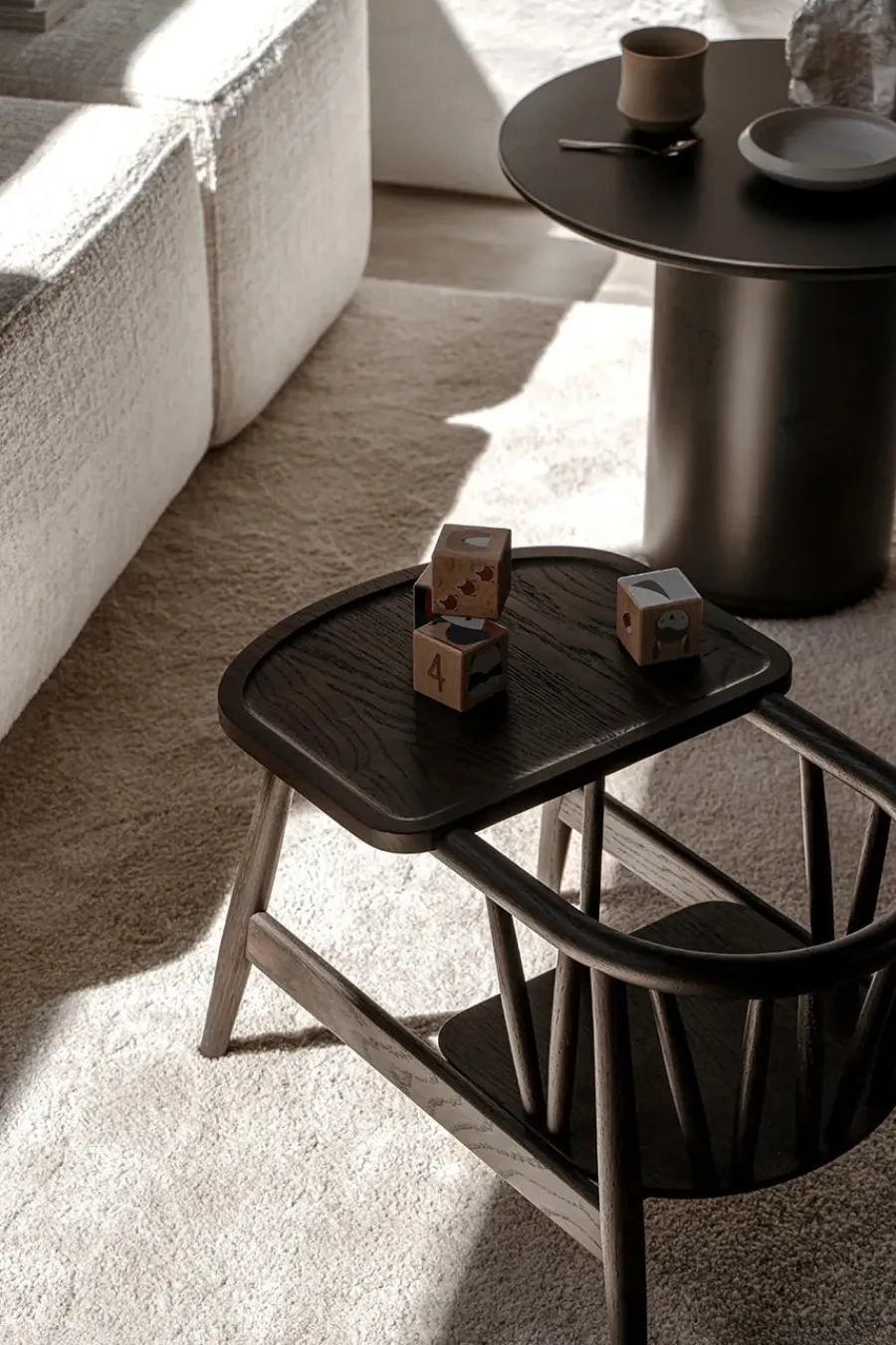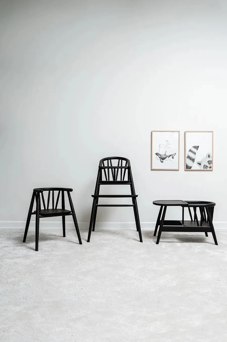 Smilla børnestolen kommer i tre forskellige varianter. Stolen er her i sortmalet eg.